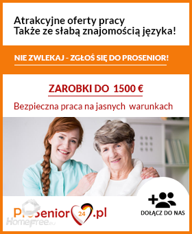 Informacje o ofercie Liczba odsłon: 786Do 1500 EUR! Opiekunka do starszego samotnego pana + WYJAZD W MARCU + ŚWIĘTA W NIEMCZECH + PREMIA ŚWIĄTECZNA Oferta dla: niepalącej OPIEKUNKI z mocno komunikatywną znajomością j. niemieckiego Masz doświadczenie w opiece osób starszych? Szukasz pracy za granicą w oparciu o legalną umowę na przejrzystych zasadach? Ta oferta jest dla Ciebie! Miejsce pracy: 66386 St. Ingbert koło Saarbrücken O podopiecznym: mężczyzna; 175 cm, 68 kg, 91 lat; stan po wylewie, depresja, astma, porusza się przy balkoniku, samodzielnie korzysta z toalety Warunki mieszkaniowe: pokój, łazienka, dom, internet Data wyjazdu: od 12.03 na 2 m-ce Wynagrodzenie: do 1500 EUR netto miesięcznie Rodzaj: WYMIANA Oferujemy: - legalną pracę - opłacamy składki ZUS, - dodatkową polisę ubezpieczeniową, - wsparcie podczas pracy w Niemczech, - zapewniamy wyżywienie i zakwaterowanie, - organizujemy przejazd oraz pokrywamy jego koszty z góry. Skontaktuj się z nami: - wypełnij formularz: http://www.prosenior24.pl/form.php , - zadzwoń: 81 524-42-45, - wyślij SMS o treści „OPIEKA” pod numer: 793-556-793 -> oddzwonimy, - odwiedź jedno z naszych biur: Główna Siedziba: ul. Serwituty 23 | 02-233 Warszawa Tel. (22) 343 94 50/51 Oddział Rekrutacji: ul. Wolska 11a | 20-411 Lublin Tel. (81) 524 42 45 Sprawdź inne nasze oferty pracy: www.prosenior24.pl