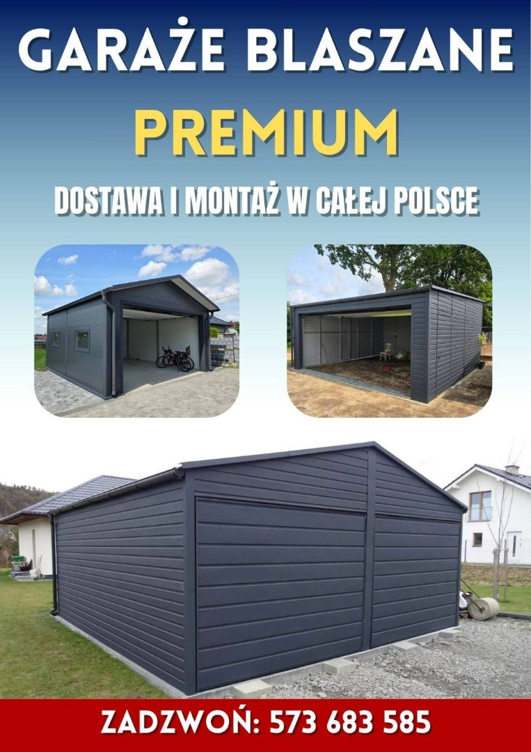 Informacje o ofercie Liczba odsłon: 104Garaż blaszany o wymiarach 8 × 6 m w kolorze grafitowym. Wyposażony w bramy uchylne, drzwi, okna oraz inne dodatki. Konstrukcja w całości wykonana z profilu zamkniętego ocynkowanego 30x30. Okucia boczne i dachowe wliczone w cenę. Kolorystyka: RAL grafitowy Przetłoczenia blachy ułożone poziomo. Przetłoczenia ścian na garażu : T7 Przetłoczenia blachy na dachu: T14 Przetłoczenia blachy na bramie i drzwiach : T7 lub T17 Specyfikacja garażu: - Szerokość: 8 m - Głębokość: 6 m - Wysokość ścian: 2,13 m - Wysokość w szczycie: 2,8 m - Dach: dwuspadowy - Brama: 2x uchylna - Drzwi 1x - Okno 2x Możliwe dodatki: - Drzwi: 450zł/1Szt. - Okno: 450zł/1Szt. (tylko 80x60-uchylne) - Napęd do bramy uchylnej: 900zł/1Szt. - Filc antykondensacyjny: 950 zł - Blachodachówka: 3600 zł - Rynny: 1000 zł - Kotwiczenie: 600 zł O nas Od ponad 10 lat specjalizujemy się w produkcji garaży blaszanych i konstrukcji stalowych. W naszej ofercie znajdziesz także schowki ogrodowe, hale magazynowe, wiaty śmietnikowe, kojce dla zwierząt oraz elementy do bram. Stawiamy na wysoką jakość, profesjonalną obsługę i elastyczne podejście do potrzeb klienta. Nasi specjaliści służą pomocą na każdym etapie - od doradztwa po montaż. Zapraszamy do zapoznania się z naszą ofertą i dołączenia do grona zadowolonych klientów Kamstal Garaże. Twój bezpieczny i funkcjonalny garaż czeka! Chcesz zamówić lub dowiedzieć się więcej? Zadzwoń: 573 683 585 lub napisz: biuro@kamstal-garaze.pl Zapraszamy do odwiedzenia strony : https://kamstal-garaze.pl/