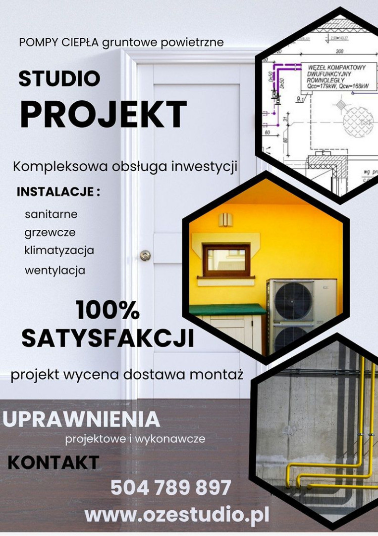 Informacje o ofercie Liczba odsłon: 114Firma OZE STUDIO PROJEKT oferuje kompleksową realizację inwestycji budowlanych od projektu po końcową realizację inwestycji polegającej na wykonaniu instalacji sanitarnej, instalacji grzewczej, wentylacji, klimatyzacji. Firma OZE STUDIO PROJEKT posiada wszelkie uprawnienia projektowe i wykonawcze do stworzenia projektu instalacji zgodnej z oczekiwaniami klienta, wykonanej przy użyciu najwyższej jakości materiałów, zastosowaniu nowoczesnych technik i technologii pozwalającej na uzyskanie najwyższej efektywności instalacji. Oferta firmy OZE STUDIO PROJEKT obejmuje projektowanie instalacji grzewczych z wykorzystaniem dowolnego rodzaju pomp ciepła: powietrzne, gruntowe, wykonanie ogrzewania podłogowego, zaprojektowania i wykonania węzłów cieplnych, kotłowni na dowolne paliwa: gaz, prąd, olej opałowy, paliwa stałe wraz z dostawą urządzeń, wykonaniem instalacji oraz uruchomieniem pomp ciepła zgodnie z założeniami projektowymi, wyliczeniami poziomu odzysku ciepła, strat ciepła oraz oczekiwanym rezultatem. W firmie OZE STUDIO PROJEKT klient współpracuje z jednym projektantem, wszelkie ustalenia, zmiany projektu, wybór materiałów, wyceny instalacji ustalane są z tym samym doradcą, a doświadczony zespół wykonawców z wieloletnim doświadczeniem zapewnia sprawną, terminową realizację inwestycji. Firma OZE STUDIO PROJEKT realizuje ustalenia projektowe, nadzór budowlany, zamawianie materiałów, dostawę materiałów i urządzeń na budowę, wykonanie instalacji zgodnie z projektem, przeprowadzenie prób, regulację i odbiór inwestycji po spełnieniu wszelkich założeń ustalonych z klientem. Firma OZE STUDIO PROJEKT posiada uprawnienia do projektowania, wykonywania instalacji i kierowania robotami, współpracuje z niezawodnymi producentami urządzeń grzewczych, klimatyzacji: klimakonwektory, konwektory, klimatyzacja kanałowa, wentylacji: wentylacji mechanicznej, rekuperacji oraz zespołem doświadczonych wykonawców realizujących opracowane przez inżynierów z OZE STUDIO PROJEKT projekty instalacji sanitarnych, grzewczych, w tym pompy ciepła, klimatyzacji i wentylacji. W firmie OZE STUDIO PROJEKT inwestycja klienta zostanie zrealizowana od początku do końca przez jeden zespół doświadczonych inżynierów, posiadających uprawnienia wykonawcze i projektowe bez ograniczeń, w tym do tworzenia charakterystyk energetycznych, projektowego obliczania strat ciepła, wykonywania obliczeń hydraulicznych dla instalacji, dobór średnic i urządzeń, schematy technologiczne kotłowni, oceny możliwości zastosowania wybranych rozwiązań technicznych oraz zasadności, opłacalności oraz efektywności zastosowanych rozwiązań technicznych wybranych przez klienta. Oferta współpracy w zakresie projektowania instalacji, wykonania instalacji, dostawy urządzeń, materiałów i zapewnienia kompleksowej realizacji inwestycji przez zespół doświadczonych wykonawców z OZE STUDIO PROJEKT dostępna jest na firmowej stronie internetowej www.ozestudio.pl lub telefonicznie pod numerem 504 789 897.