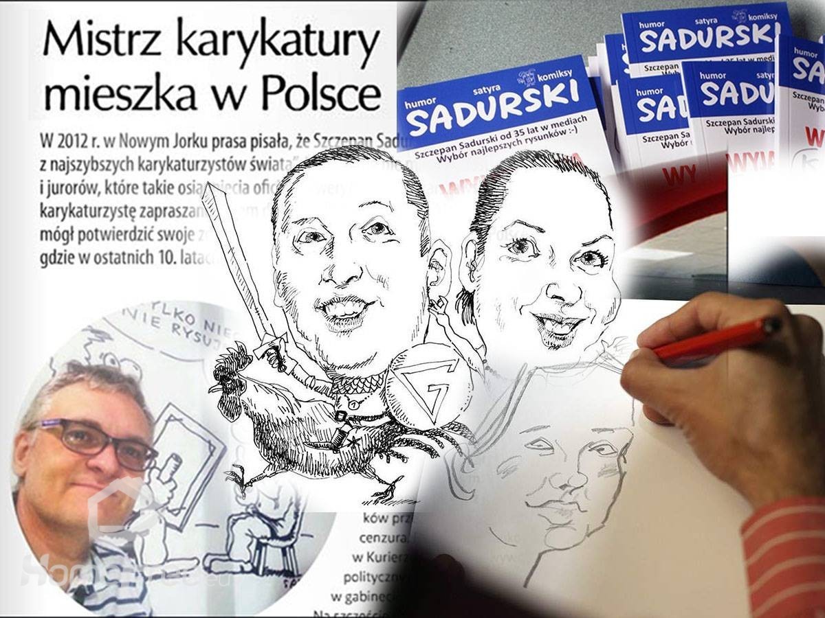 Informacje o ofercie Liczba odsłon: 323Rysunki Szczepana Sadurskiego Polacy znają nie tylko z prasy, programów TV i gazetki Dobry Humor. Obecnie to słynny karykaturzysta eventowy. Rysował w Nowym Jorku, Australii, Europie, ale najwięcej pracy ma w Polsce. Rysuje karykatury na żywo na imprezach firmowych i prywatnych (np. wesela). Odwiedza duże miasta i małe miejscowości, uświetniając swym talentem kolejne imprezy. Targi, konferencje, szkolenia, wyjazdy integracyjne, itd. 100 sekund na zrobienie 1 karykatury - to trzeba zobaczyć na własne oczy! Atrakcyjne honorarium. Cała Polska. Zapytaj o wolny termin. Aby szybko uzyskać ofertę, podaj: 1) Data. 2) Miejscowość. 3) Rodzaj imprezy, liczba gości. 4) Przedstaw się i podaj swój nr telefonu. E-mail: sadurski@int.pl Uwaga, nowość na eventy firmowe: nauka rysowania karykatur. Poznaj wyjątkowy zawód oczami znanego karykaturzysty, posłuchaj anegdot. Po pokazie i wskazówkach, narysujesz własnoręcznie karykaturę! Mnóstwo śmiechu i pozytywnej energii dla całej grupy. A na końcu każdy zostanie przez Sadurskiego narysowany! Rysunki i karykatury Sadurskiego: - Karykatury.com - Rysunki.pl - Karykatura.com