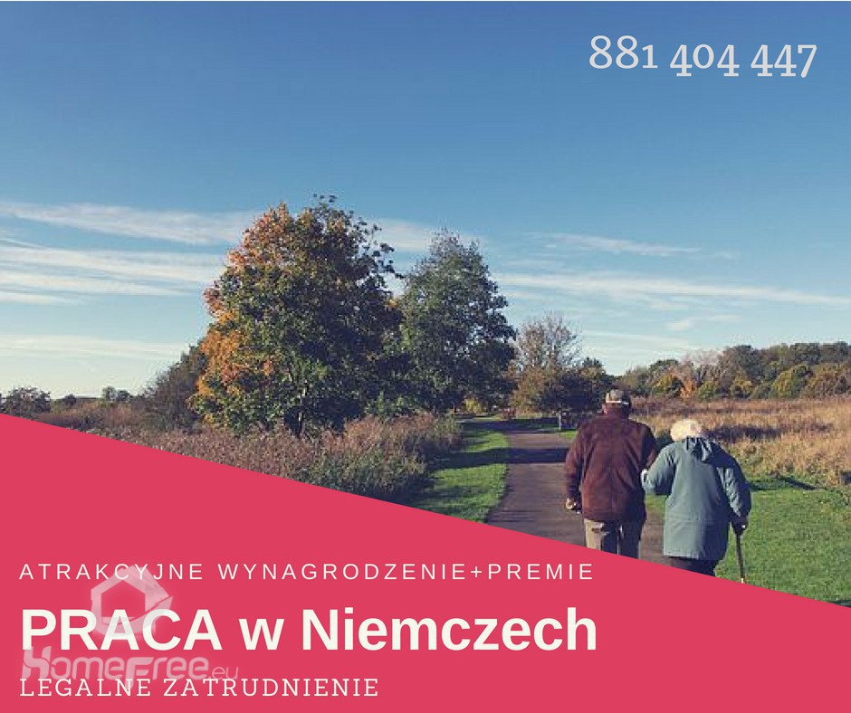 Informacje o ofercie Liczba odsłon: 817Agencja zatrudnienia Aktivmed24 (nr certyfikatu 11628) jest wiodącą firmą zatrudniającą Opiekunów/Opiekunki Seniorów na terenie Niemiec. Od 2014 r. jesteśmy członkiem Sekcji Agencji Opieki (SAO) – organizacji zrzeszającej firmy z branży opiekuńczej, działającej w ramach Stowarzyszenia Agencji Zatrudnienia. Zapraszamy do legalnej i bezpiecznej pracy kandydatów z całej Polski! Zapewniamy: - wysokie zarobki w euro oraz dodatkowe premie (ZUS od średniej krajowej), - jedną czytelną umowę, - wsparcie całego zespołu i opieka koordynatora podczas pobytu Niemczech, - całkowite pokrycie kosztów podróży i organizację przejazdu, bezpłatne zakwaterowanie i pełne wyżywienie w domu podopiecznego, Wymagamy: - minimum podstawowej znajomości języka niemieckiego (możliwość odbycia bezpłatnego kursu językowego przed wyjazdem do pracy), - mile widziane doświadczenie w pracy jako Opiekun Seniora, - mile widziane prawo jazdy (nie jest to warunek konieczny), Sprawdź i wybierz swoje zlecenie: http://aktivmed24.pl/oferty-pracy.html Osoby zainteresowane podjęciem zlecenia prosimy o przesłanie danych kontaktowych lub kontakt telefoniczny z naszym koordynatorem: kom.: 881 404 447 email: martaswies@aktivmed24.pl Proszę o dołączenie poniższej klauzuli: „Wyrażam zgodę na przetwarzanie moim danych osobowych zamieszczonych w niniejszej aplikacji oraz dołączonych dokumentach przez Aktivmed.24 Sp. z o.o. Sp. Komandytowa z siedzibą w Warszawie, ul. Aleja Jana Chrystiana Szucha 13/15/6, KRS: 0000721480 w celu związanym z udziałem mojej osoby w niniejszym w procesie rekrutacyjnym.” „Wyrażam zgodę na przetwarzanie moim danych osobowych zamieszczonych w niniejszej aplikacji oraz dołączonych dokumentach przez Aktivmed.24 Sp. z o.o. Sp. Komandytowa z siedzibą w Warszawie, ul. Aleja Jana Chrystiana Szucha 13/15/6, KRS: 0000721480 w celu wykorzystania moich danych zamieszczonych w niniejszej aplikacji oraz dołączonych dokumentach w przyszłych procesach rekrutacyjnych organizowanych przez Administratora Danych Osobowych.” Oświadczam również, że zapoznałem się pouczeniem realizującym obowiązek informacyjny określony w art. 13 ust. 1 i ust. 2 ogólnego rozporządzenia o ochronie danych osobowych z dnia 27 kwietnia 2016 r. , który został mi przedstawiony w formie Załącznika nr 1.