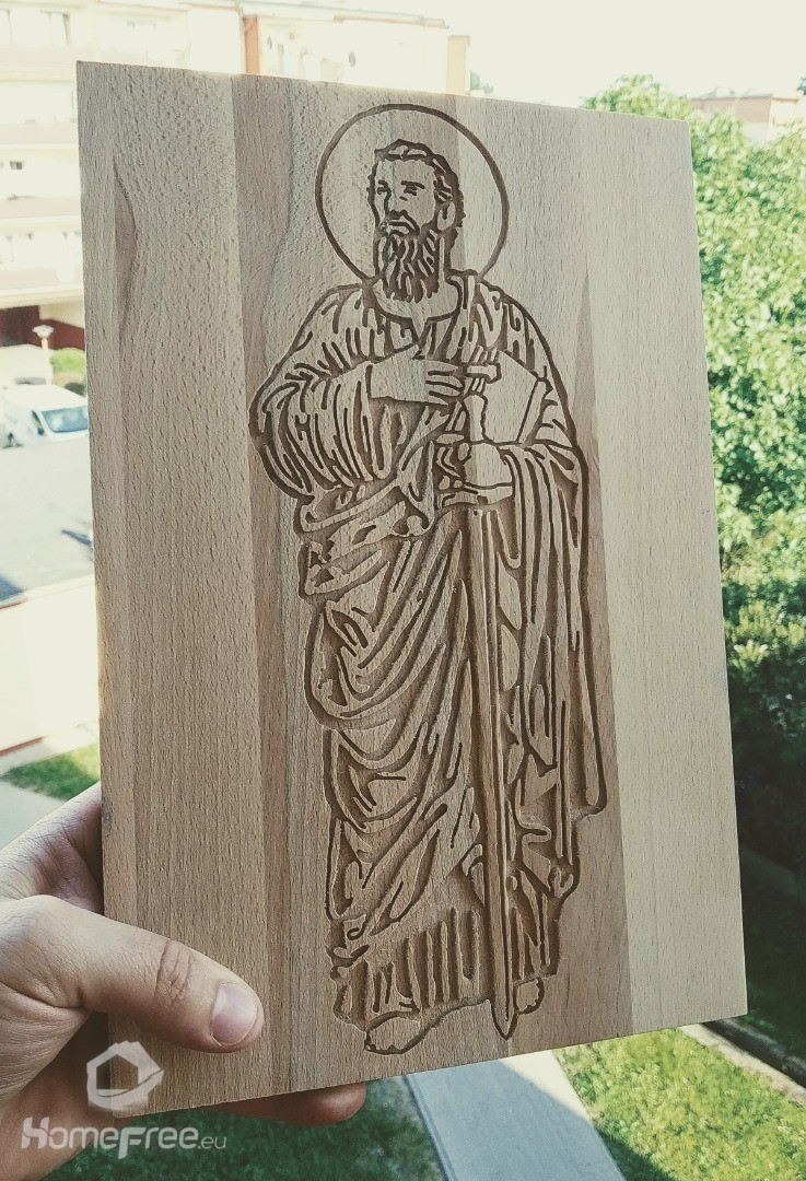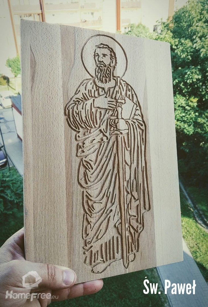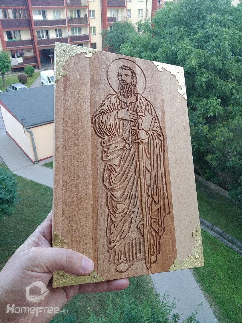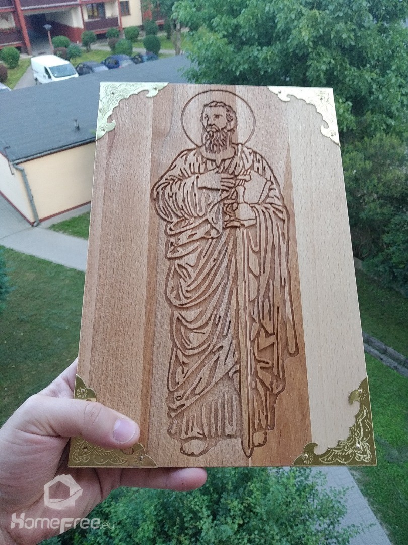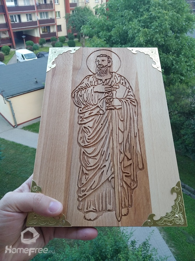 Informacje o ofercie Liczba odsłon: 896Witam. W ofercie posiadam ręcznie wykonaną rzeźbę przedstawiającą Św. Pawła. Praca jest wykonana w drewnie bukowym. Wymiary 30 cm na 20 cm i 2,5 cm grubości. Praca jest wykonana ręcznie, nie jest to komputerowa kopia typu CNC. Istnieje możliwość wykonania innej płaskorzeźby z uwzględnieniem uwag klienta.