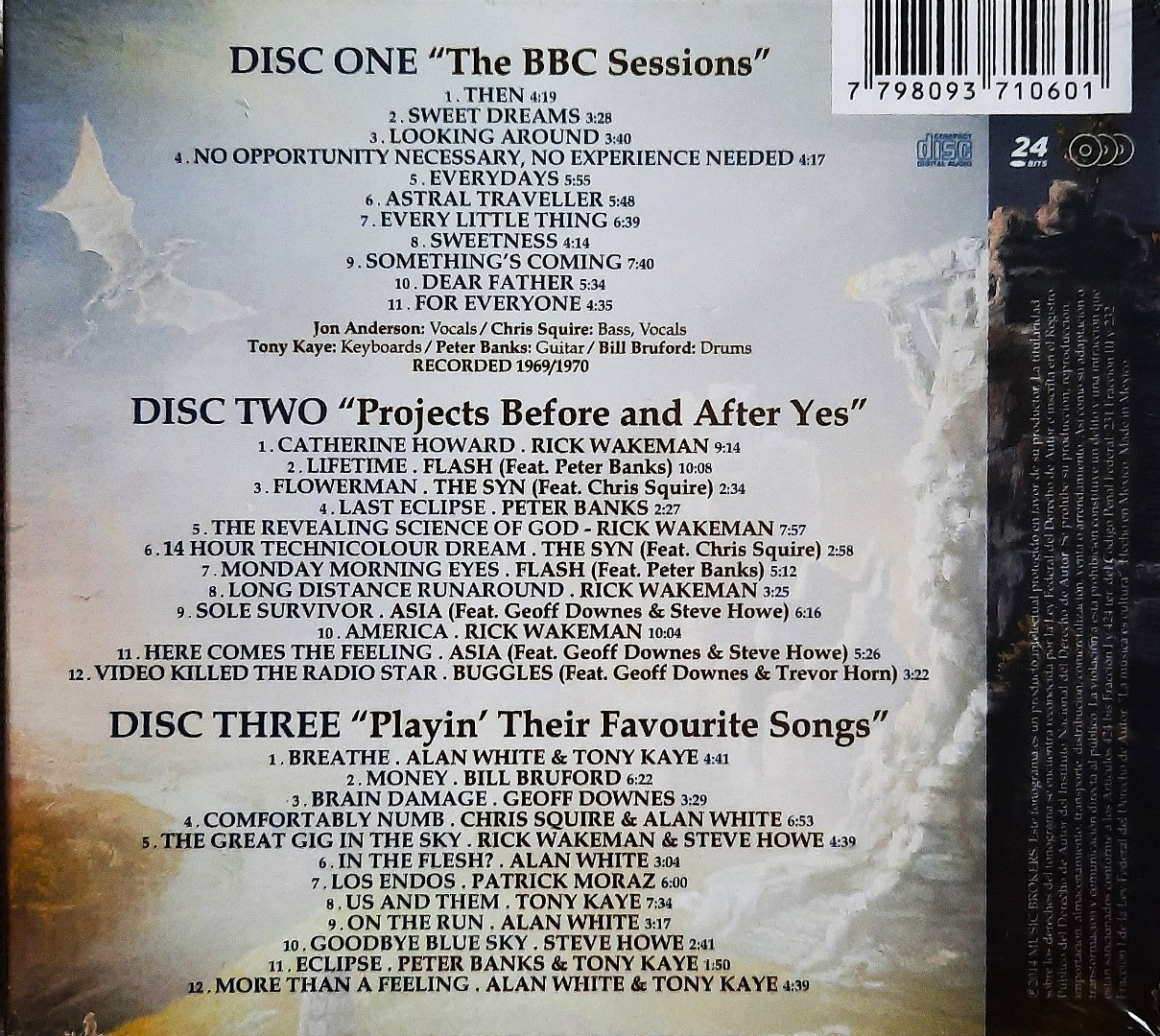 Informacje o ofercie Liczba odsłon: 16Polecam Znakomity Potrójny Zestaw 3X CD Kultowego Zespołu YES -A Jorney Through the Inner World Gorąco Polecam ten Zestaw 3 Płytowy CD Wspaniała Muzyka ! Dobry Pomysł na Prezent ! Wysyłka- Paczkomat-Kurier... Oszczędnościowa Paczka Ekonomiczna - Poczta - Cały Kraj ! Każda Przesyłka jest solidnie zapakowana Gorąco Polecam ten Album CD !! Zestaw 3XCD Nowy Natychmiastowa Realizacja przesyłki Dodatkowo zainteresuje Cię inna płyta CD z Naszej kolekcji Wyślemy jedną przesyłką co zmniejszy koszt Zainteresowanych proszę o wcześniejszy kontakt Możliwość wysyłki za Pobraniem ! UTWORY 1. Then 2. Sweet Dreams 3. Looking Around 4. Everydays 5. Astral Traveller 6. Every Little Thing 7. Sweetness 8. Dear Father 9. For Everyone 1. Catherine Howard Rick Wakeman 2. Lifetime Flash Peter Banks 3. Flowerman Chris Squire 4. Last Eclipse Peter Banks 5. The Revealing Science of God Rick Wakeman 6. 14 Hour Technicolour Dream 7. Monday Morning Eyes Flash Peter Banks 8. Long Distance Runaround Rick Wakeman 9. Sole Survivor Asia Geoff Downes 10. America Rick Wakeman 11. Here Comes the Feeling Geoff Downe 12. Video Killed the Radio Star Buggles 1. Breathe Alan White Tony Kaye 2. Money Bill Bruford 3. Brain Damage Geoff Downes 4. Comfortably Numb Chris Squire , Alan White 5. The Great Gig In the Sky Rick Wakeman Steve Howe 6. In the Flesh Alan White 7. Los Endos Patrick Moraz 8. Us and Them Tony Kaye 9. On the Run Alan White 10. Goodbye Blue Sky Steve Howe 11. Eclipse Peter Banks Tony Kaye 12. More Than a Feeling Alan White Tony Kaye Chcesz zakupić dodatkową płytę z kolekcji wyślemy Jedną wysyłką co zmniejszy koszt