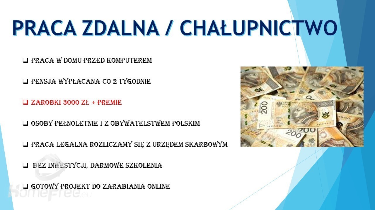 Informacje o ofercie Liczba odsłon: 448Aplikuj jeżeli: • Poszukujesz dodatkowej lub stałej pracy • Jesteś rodzicem i chcesz pracować z domu • Cenisz sobie wygodę • Potrzebujesz dorobić do domowego budżetu • Szukasz pracy na dłuższy okres czasu Oferuję dodatkową pracę, którą można bezproblemowo pogodzić z pracą na pełen etat / studiami / szkołą / opieką nad dzieckiem. Praca jest wykonywana z domu w bardzo elastycznych godzinach Praca opiera się na : • Promowaniu produktów w sieci według zaleceń • Kontakcie z klientem w formie pisemnej na Messengerze • Pozyskiwaniu partnerów do współpracy • Odpisywaniu na wiadomości (możesz robić to na telefonie) • Wystawianiu gotowych ogłoszeń sprzedażowych • Na pracę przeznaczamy 2-3 godziny dziennie, grafik ustalasz sam Każda z powyższych czynności jest bardzo prosta i poradzi sobie z tym każda osoba bez żadnego doświadczenia. Bazujemy na gotowych materiałach i praca ogranicza się nawet do kopiuj wklej. Zapewniamy narzędzia, szkolenia, wiedzę oraz materiały pomocnicze. Oferujemy: • Atrakcyjne wynagrodzenie uzależnione od zaangażowania • Regularne wypłaty na rachunek bankowy przelewem • Szkolenia wideo oraz warsztaty wewnętrzne • Spotkania na Zoom’ie • Stałą pomoc doświadczonych liderów zespołu • Pracę w ambitnym i młodym zespole • Pracę z domu - całkowicie online bez szefa nad głową • Pracujesz na gotowych szablonach które otrzymujesz podczas szkolenia Wymagamy: • Ukończone 18 lat • Podstawowa obsługa komputera i telefonu • 2-3 godziny wolnego czasu dziennie • Chęć uczenia się nowych rzeczy • Zaangażowanie • Obywatelstwo polskie Ta oferta jest zupełnie czymś innym niż praca na pełen etat. Nie ma tutaj szefa ,który stoi nad Twoją głową, nie musisz nikogo pytać o to czy możesz zrobić sobie przerwę, a czas pracy jest w 100% zależny od Ciebie. Jest to praca dodatkowa, która może z czasem przekształcić się w stałe źródło dochodu, ponieważ tutaj można albo dorabiać, albo zarabiać. Ty o tym decydujesz.