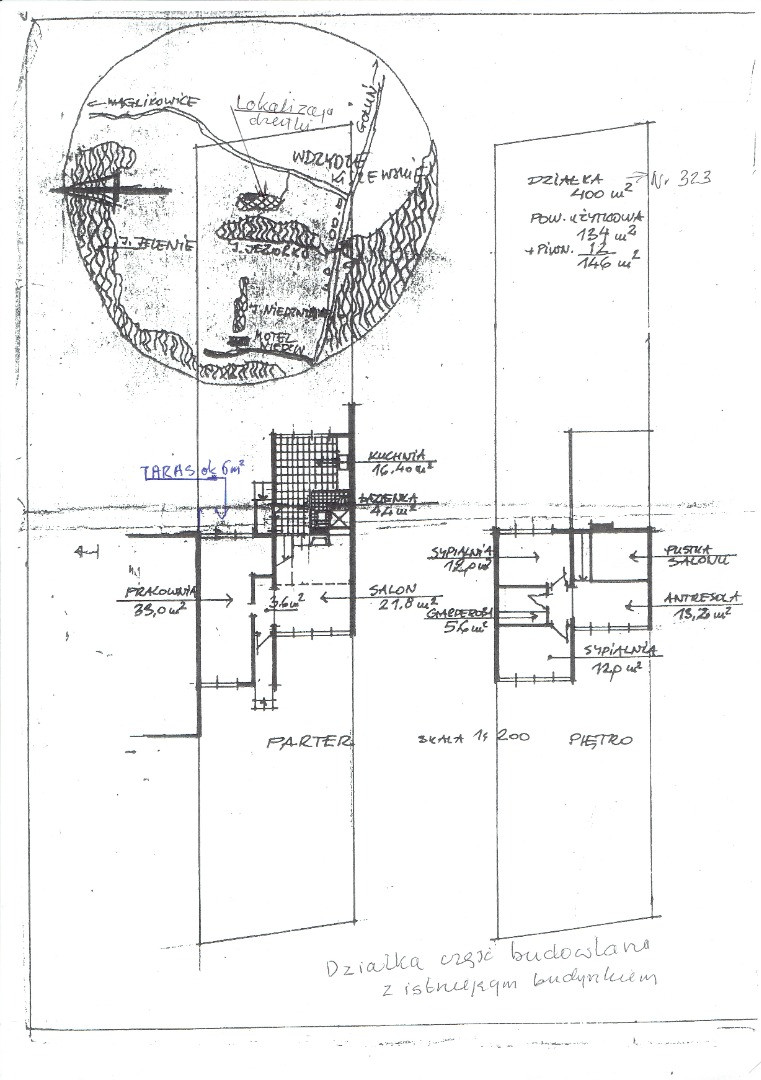 Informacje o ofercie Liczba odsłon: 31Wyjątkowa lokalizacja w zalesionym, zielonym sercu Szwajcarii Kaszubskiej - Wdzydzkiego Parku Krajobrazowego na słynnym Osiedlu Plastyków. Sąsiedzi znani artyści. Cicha, spokojna okolica. Śpiew ptaków i szum drzew. W pobliżu dwa jeziora – małe – Jeziorko – ok. 70m od domu oraz duże, Jezioro Wdzydze i jego odnoga, Jezioro Jelenie ok. 1000-2000m. Gratka dla wędkarzy, fanów żeglarstwa, kajaków i miłośników sportów wodnych. 10 minut piechotą przez las do wsi Wdzydze Kiszewskie - w niej sklepy, restauracje, słynny Hotel Niedźwiadek, baseny, korty tenisowe, boiska, wypożyczalnie sprzętu wodnego, wieża widokowa, smażalnie ryb. W sezonie imprezy, koncerty. 10 minut piechotą do Skansenu – muzeum folkloru Kaszubskiego. Co roku w lipcu odbywa się w nim Jarmark z lokalnymi wystawcami rękodzieła, rzemieślnictwa oraz tematycznymi imprezami folklorystycznymi. Ok. 20 minut autem do Kościerzyny – połączenia również autobusami z Wdzydz. W Kościerzynie PKM do Gdańska – piękna trasa i niecała godzina drogi w bardzo dobrych warunkach. Najbardziej atrakcyjny region turystyczny i rekreacyjno – wypoczynkowy północnej Polski obok Mazur. Dom Jednopiętrowy w zespole zabudowy letniskowej o powierzchni – 146m2 - plan domu i działki na skanie w galerii zdjęć. Na parterze duży salon z kominkiem, duża, przestronna kuchnia z oknami na ogród, duży pokój użytkowy obecnie będący sypialnio-bawialnią dla dzieci z możliwością przerobienia na np. garaż. Łazienka z prysznicem. 2 sypialnie i duża antresola na piętrze. Wnętrze parteru w stylu rustykalnym. Duży, zadaszony taras w części ogrodowej o powierzchni 6m2 idealny na grilla. Całkowita powierzchnia działki 2100m2. Działka podzielona na 2 segmenty – pierwszy, mniejszy, ogrodzony o powierzchni 400m2 i posiadający pełne pozwolenie na budowę Oraz drugi, zalesiony, rekreacyjny o powierzchni 1700m2 i możliwość wypracowania od Starosty pozwolenia na budowę – nam ono nie było potrzebne:) Działka uzbrojona w sieć wodociągową – wodę podgrzewa boiler, ścieki spływają do zbiornika bezodpływowego. Ruszają pracę budowy na osiedlu sieci kanalizacyjnej i podłączeniem do niej domu. Sieć elektryczna + TV. Ogrzewanie kominkowe. Dom dostępny do obejrzenia i zakupu od zaraz. Więcej informacji w rozmowie telefonicznej. Sprzedaż od osoby prywatnej. NIE INTERESUJĄ MNIE OFERTY BIUR NIERUCHOMOŚCI, POŚREDNIKÓW.