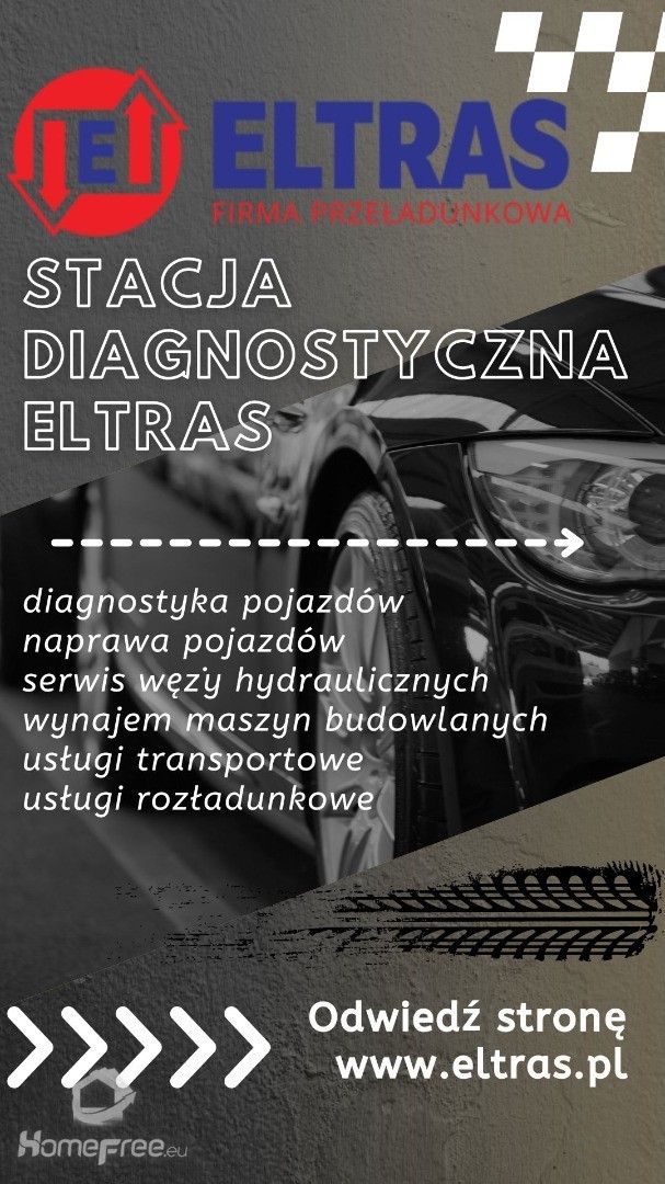 Informacje o ofercie Liczba odsłon: 274Firma ELTRAS z siedzibą przy ul Logarytmicznej 7 w Białymstoku prowadzi stację diagnostyczną pojazdów, warsztat napraw samochodowych oraz serwis przewodów hydrauliki siłowej stosowanych w pojazdach i maszynach tj. wywrotki, wózki widłowe, podnośniki, koparki itp. Firma ELTRAS świadczy profesjonalne usługi zakuwania węży hydraulicznych wraz z możliwością dojazdu serwisu hydrauliki siłowej na miejsce awarii oraz szerokim asortymentem akcesoriów do zakuwania węzy dostępnych od ręki. Firma ELTRAS wykorzystuje wieloletnie doświadczenia w eksploatacji pojazdów ciężarowych oraz maszyn do zapewnienia klientom najwyższej jakości usług. Firma ELTRAS specjalizuje się w usługach transportowych z wykorzystaniem własnych samochodów ciężarowych z wymiennymi nadwoziami oraz przyczepami niskopodwoziowymi do transportu ponadgabarytowego na terenie całego kraju. Usługi transportowe świadczą w ELTRAS doświadczeni kierowcy zapewniając bezpieczeństwo oraz terminową realizację zlecenia. Firma ELTRAS świadczy również specjalistyczne usługi rozładunkowe z użyciem własnych maszyn przeładunkowych do rozładunku wagonów, samochodów ciężarowych, a zatrudnieni w ELTRAS operatorzy maszyn rozładunkowych gwarantują sprawną obsługę każdego zlecenia. Firma ELTRAS dokłada wszelkich starań, aby oferta usług motoryzacyjnych firmy miała kompleksowy charakter. W związku z tym firma ELTRAS oferuje kompleksowe usługi diagnostyczne samochodów wszelkiego typu, motocykli oraz maszyn w Okręgowej Stacji Kontroli Pojazdów, usługi naprawy pojazdów i maszyn w warsztacie samochodowym zlokalizowanym w budynku stacji diagnostycznej oraz usługi serwisowe w zakresie naprawy, wymiany i przystosowania węży hydraulicznych w serwisie hydrauliki siłowej prowadzonym przez firmę ELTRAS. Klienci korzystający z usług stacji kontroli pojazdów ELTRAS mogą korzystać z preferencyjnych warunków naprawy pojazdów w warsztacie samochodowym, w tym również polegających na usunięciu drobnych usterek w trakcie przeglądu technicznego, bez konieczności ponownej wizyty w stacji diagnostycznej, a po zakończeniu badań technicznych skorzystać z bezpłatnej usługi ozonowania wnętrza pojazdu. Firma ELTRAS zapewnia nowoczesne narzędzia diagnostyczne, fachową pomoc wykwalifikowanych mechaników oraz korzystne ceny części i usług naprawczych w warsztacie samochodowym należącym do ELTRAS. Firma ELTRAS oferuje również wynajem i prowadzi sprzedaż maszyn sprowadzanych z krajów Unii Europejskiej tj. koparki, ładowarki kołowe, koparko-ładowarki renomowanych producentów w atrakcyjnych cenach. Zachęcamy do zapoznania z ofertą firmy ELTRAS na firmowej stronie www.eltras.pl lub kontaktu z obsługą firmy pod numerem 85 652 51 32.